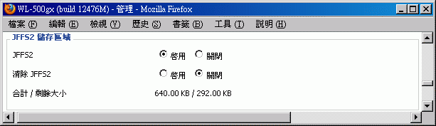 系統管理→ 基本管理→ JFFS2 儲存區域