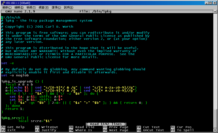 GNU nano version 2.1.9 (compiled 01:11:43, Feb 19 2009)
